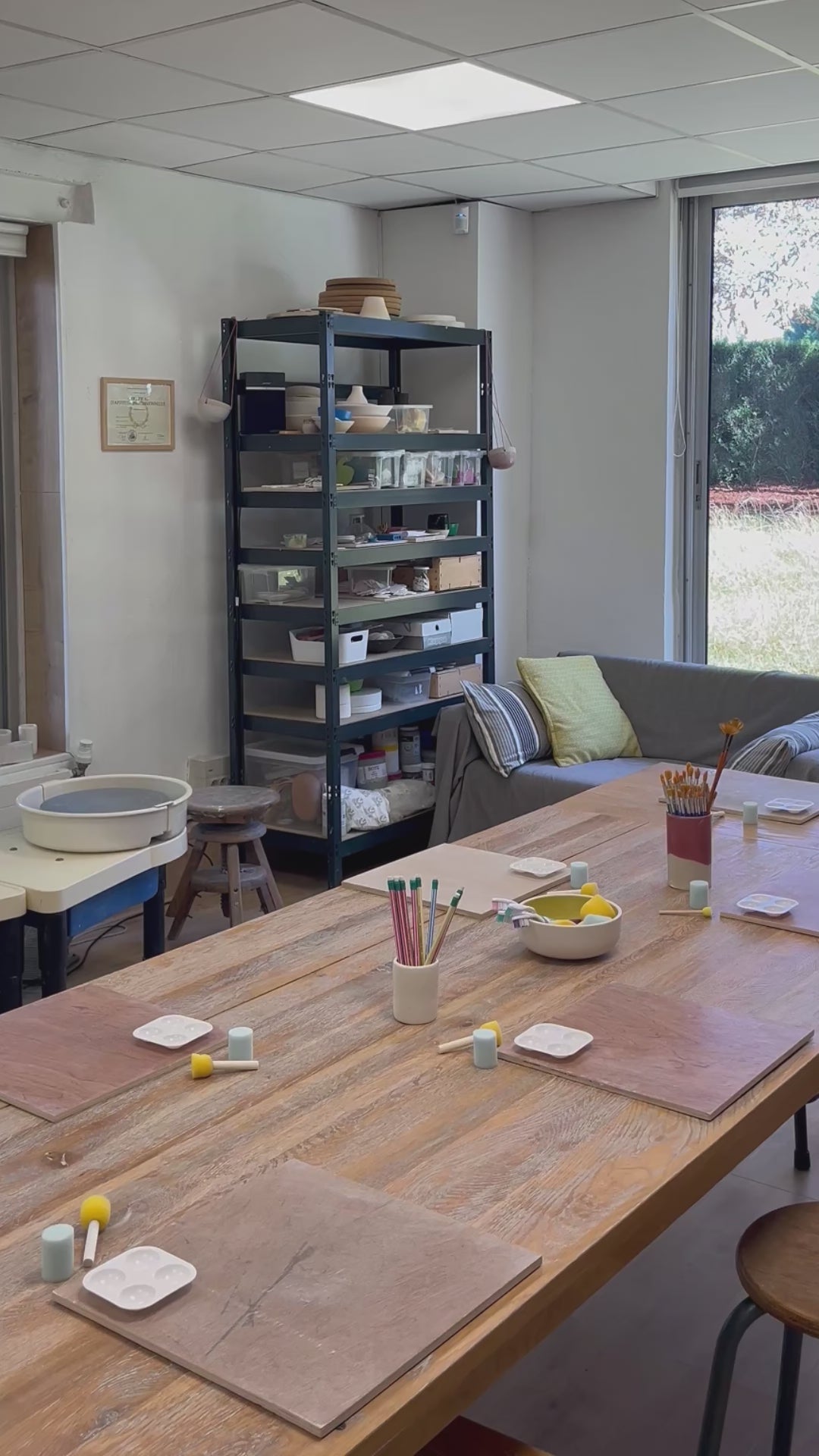 Je mets à disposition plusieurs pièces en céramique biscuitée (déjà cuites une première fois). Certaines sont incluses dans le tarif de base. Si vous avez un coup de cœur pour une pièce plus grande, un petit supplément pourra être réglé sur place.